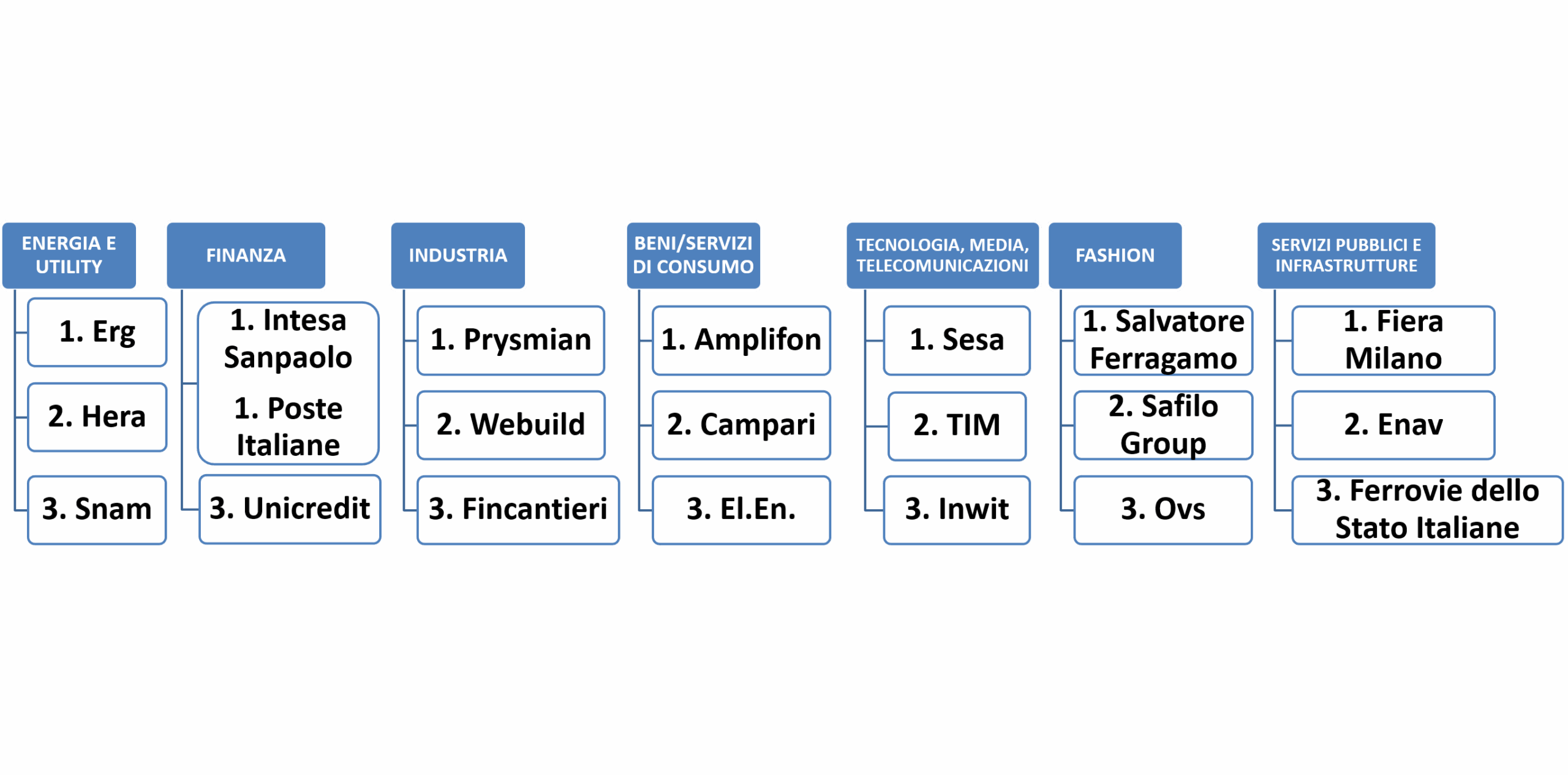 Le classifiche di ESG Identity Corporate Index 2025 individuano i Best Case tra le aziende partecipanti all’Index e prevedono sotto classifiche dimensionali e settoriali. Si prefiggono l’obiettivo di stimolare il dibattito e il confronto sulle migliori pratiche di integrazione degli ESG in azienda.
